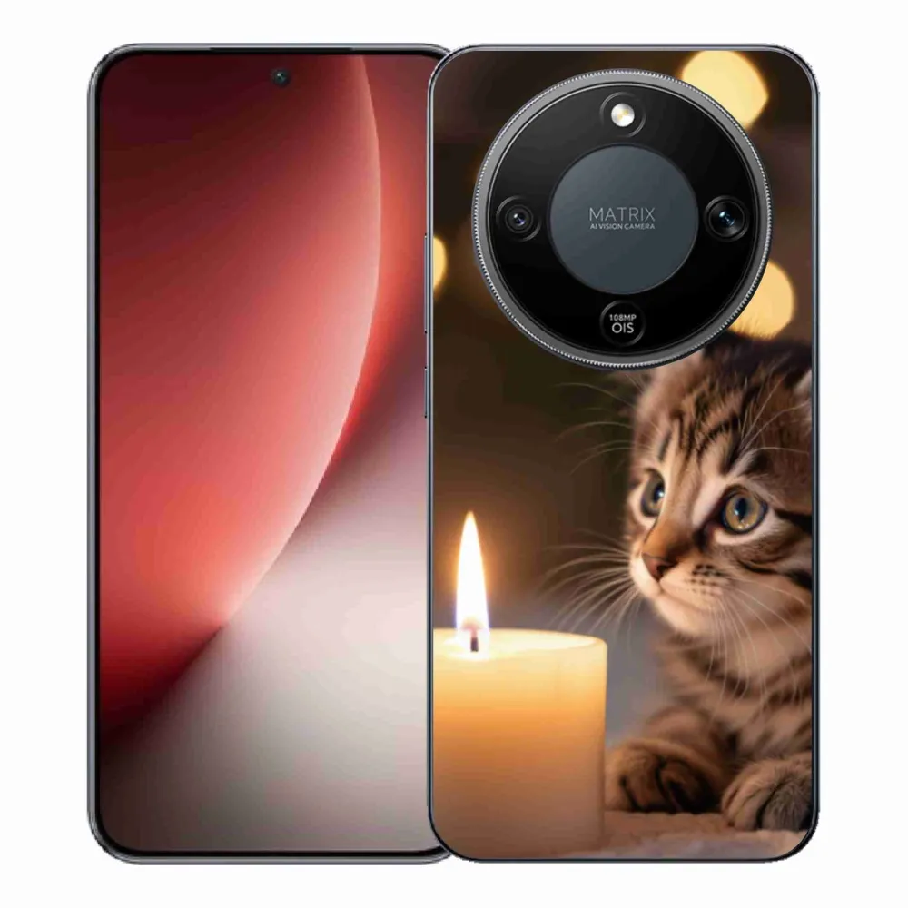 Pružný gélový obal mmCase s obrázkom na Honor Magic 8 Lite 5G - mačiatko a sviečka