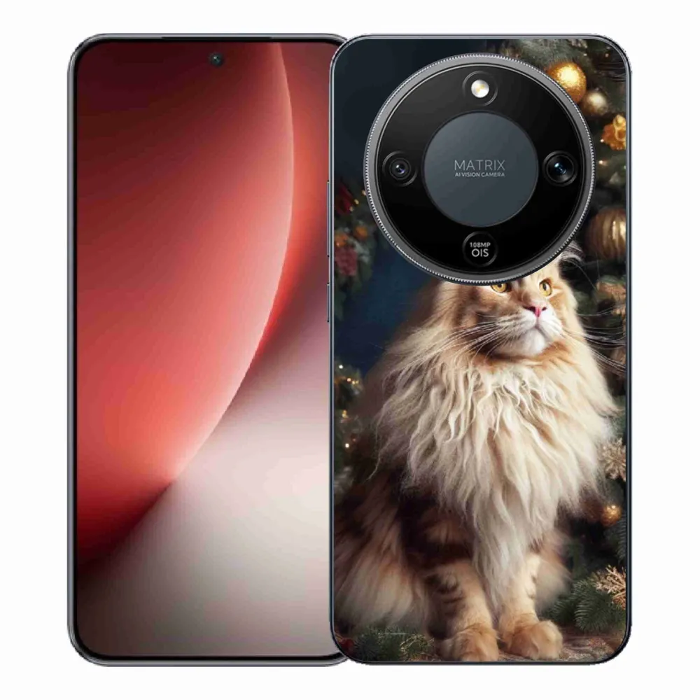 Vianočné puzdro na Honor Magic 8 Lite 5G – mačka pri stromčeku poskytuje všetky výhody gélových krytov, a to v zaujímavom dizajne.