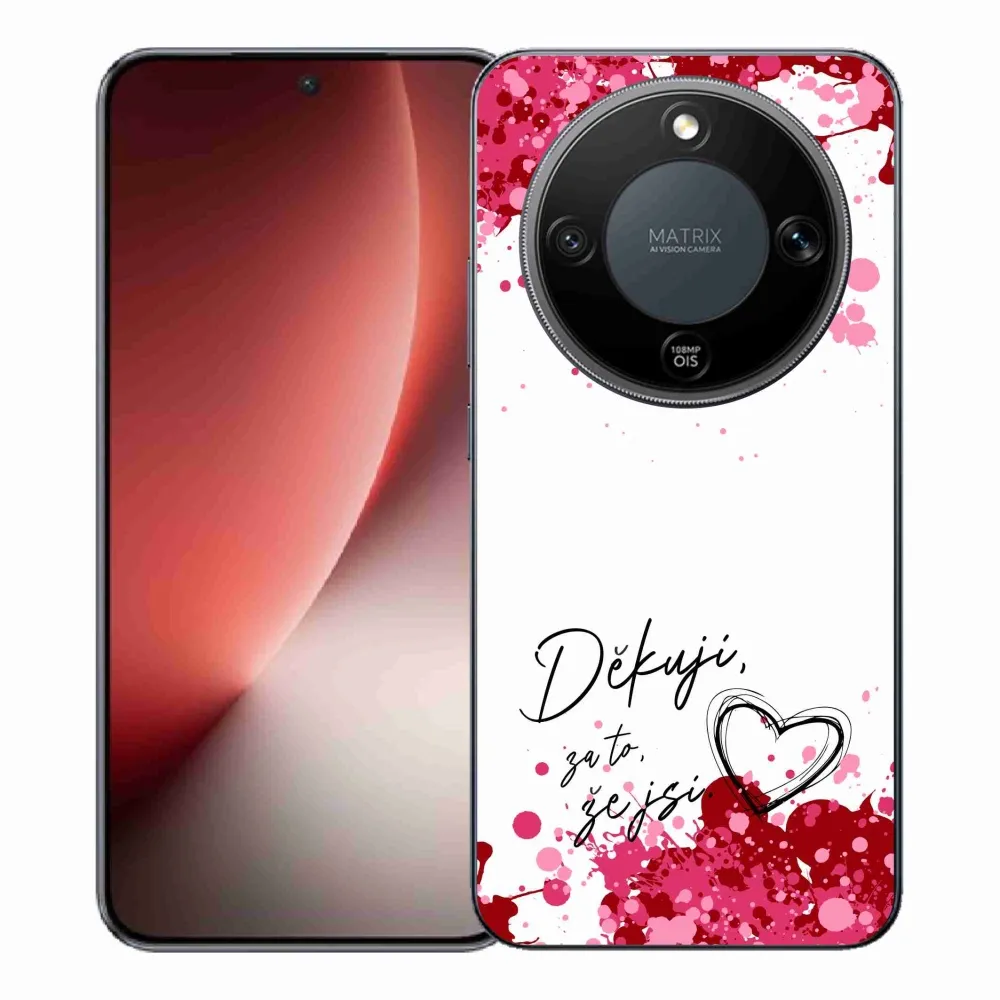 Pružný gélový obal mmCase s obrázkom na Honor Magic 8 Lite 5G - zamilovaný text 2 biele pozadie