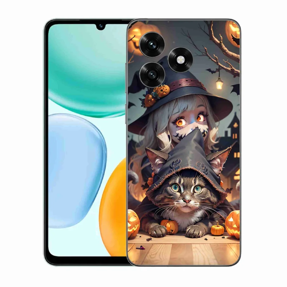 Mačacie púzdro na Honor X5c Plus - čarodejnice s mačkou poskytuje všetky výhody gélových krytov, a to v zaujímavom dizajne.