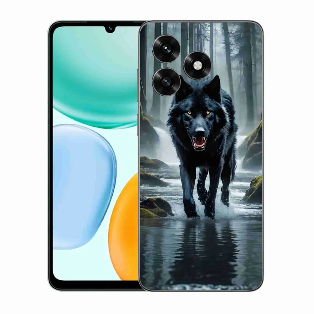 Púzdro so šelmou na Honor X5c Plus - čierny vlk poskytuje všetky výhody gélových krytov, a to v zaujímavom dizajne.
