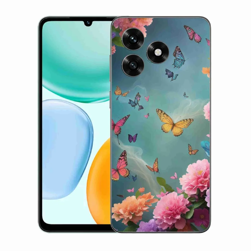 Kvetinové púzdro na Honor X5c Plus - farebné kvety a motýle poskytuje všetky výhody gélových obalov, a to v zaujímavom dizajne.