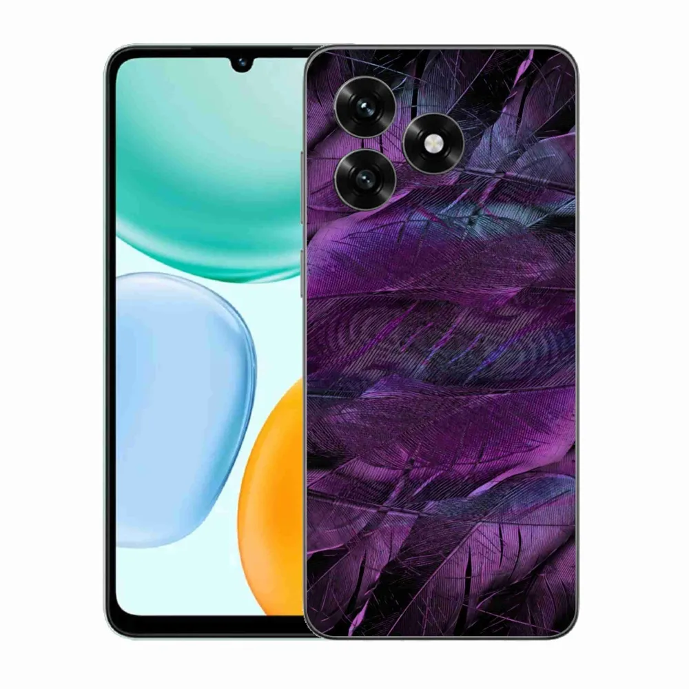 Pružný gélový obal mmCase s obrázkom na Honor X5c Plus - fialové pierka