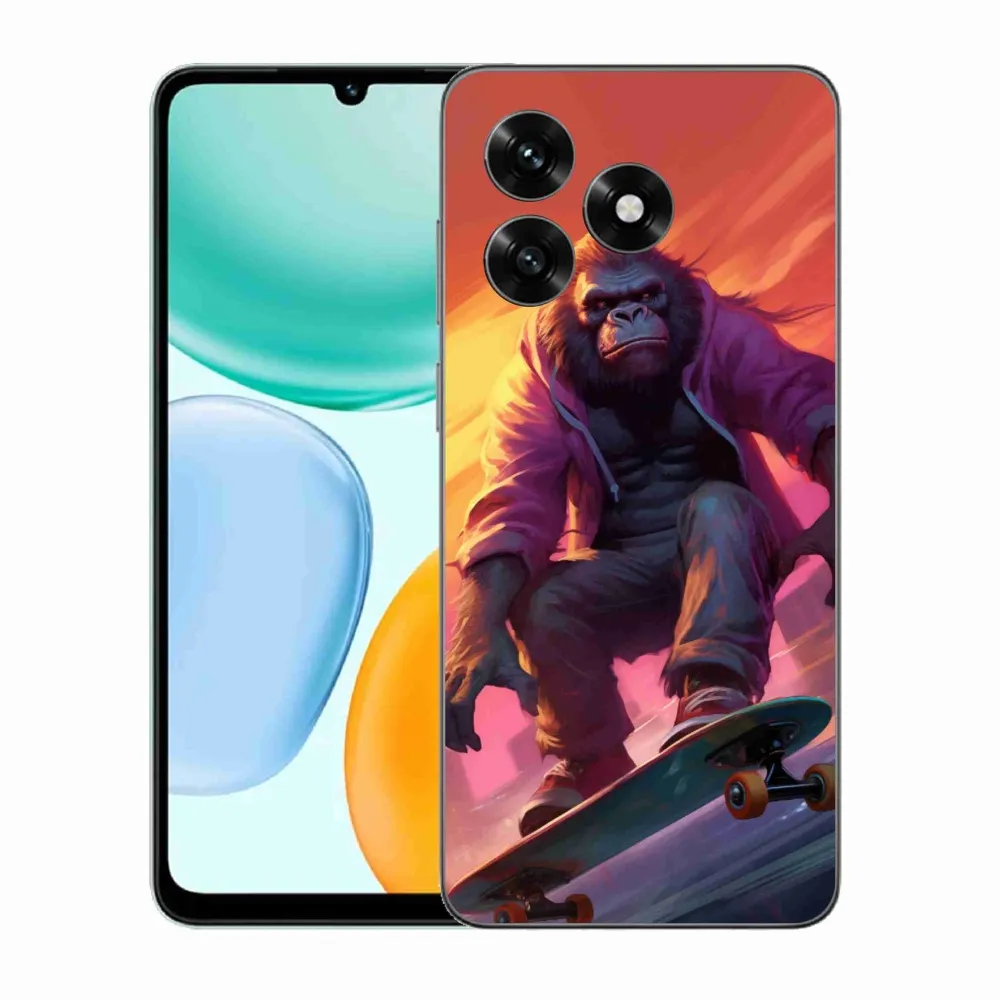 Zvieracie púzdro na Honor X5c Plus – gorila na skateboarde poskytuje všetky výhody gélových obalov, a to v zaujímavom dizajne.