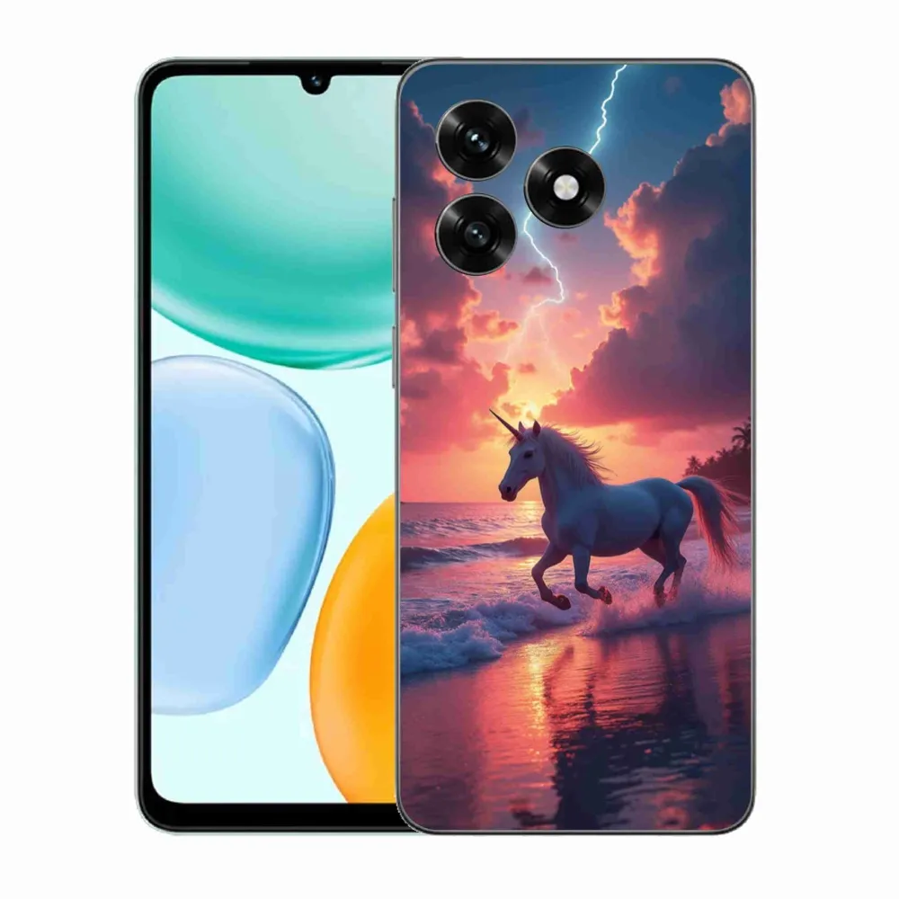 Púzdro s motívom koňa na Honor X5c Plus - jednorožec na pláži poskytuje všetky výhody gélových krytov, a to v zaujímavom dizajne.