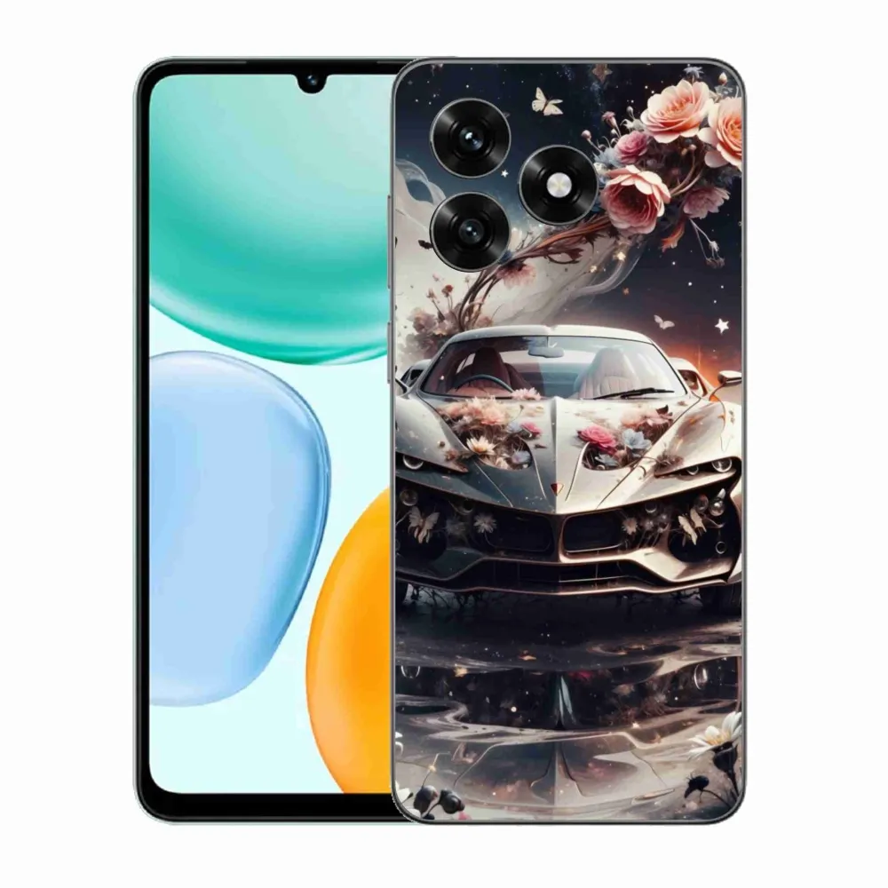 Puzdro na Honor X5c Plus - kvetinový športový automobil poskytuje všetky výhody gélových obalov, a to v zaujímavom dizajne.
