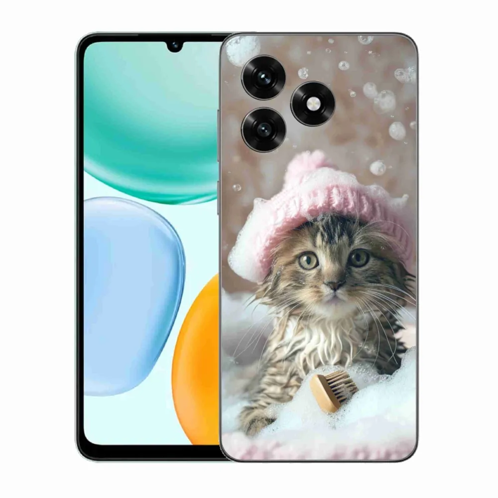 Mačacie púzdro na Honor X5c Plus - mačiatko a kúpeľ poskytuje všetky výhody gélových obalov, a to v zaujímavom dizajne.