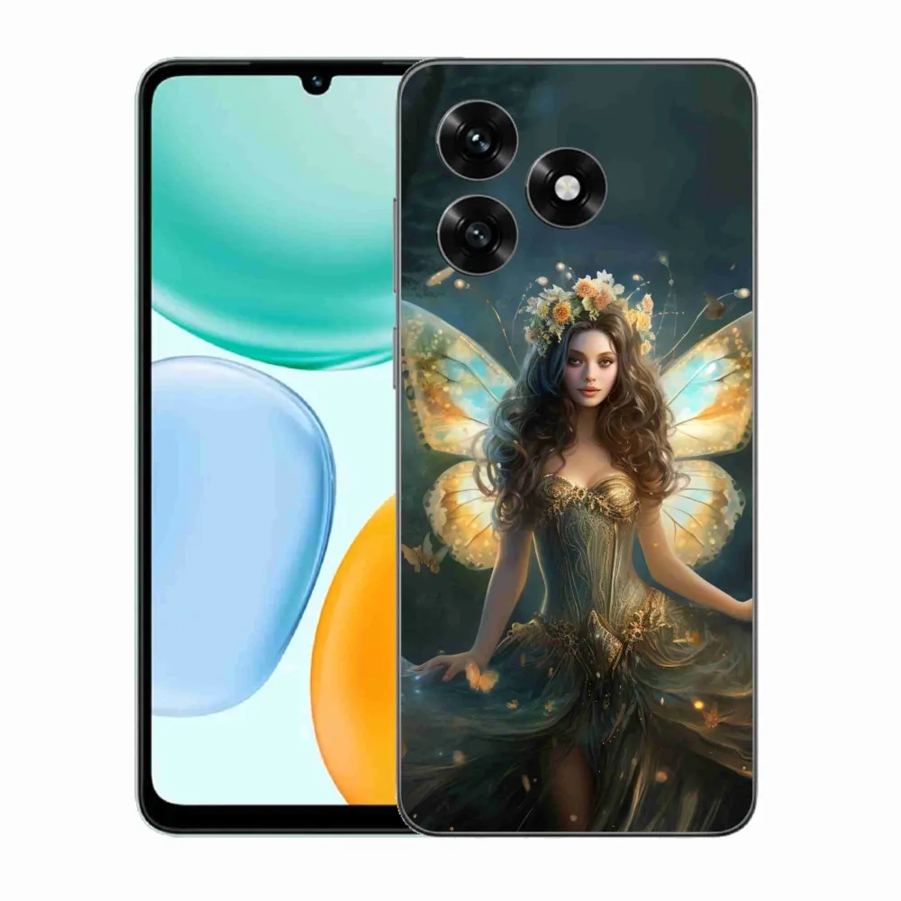 Motýlie puzdro na Honor X5c Plus - motýlia žena poskytuje všetky výhody gélových krytov, a to v zaujímavom dizajne.