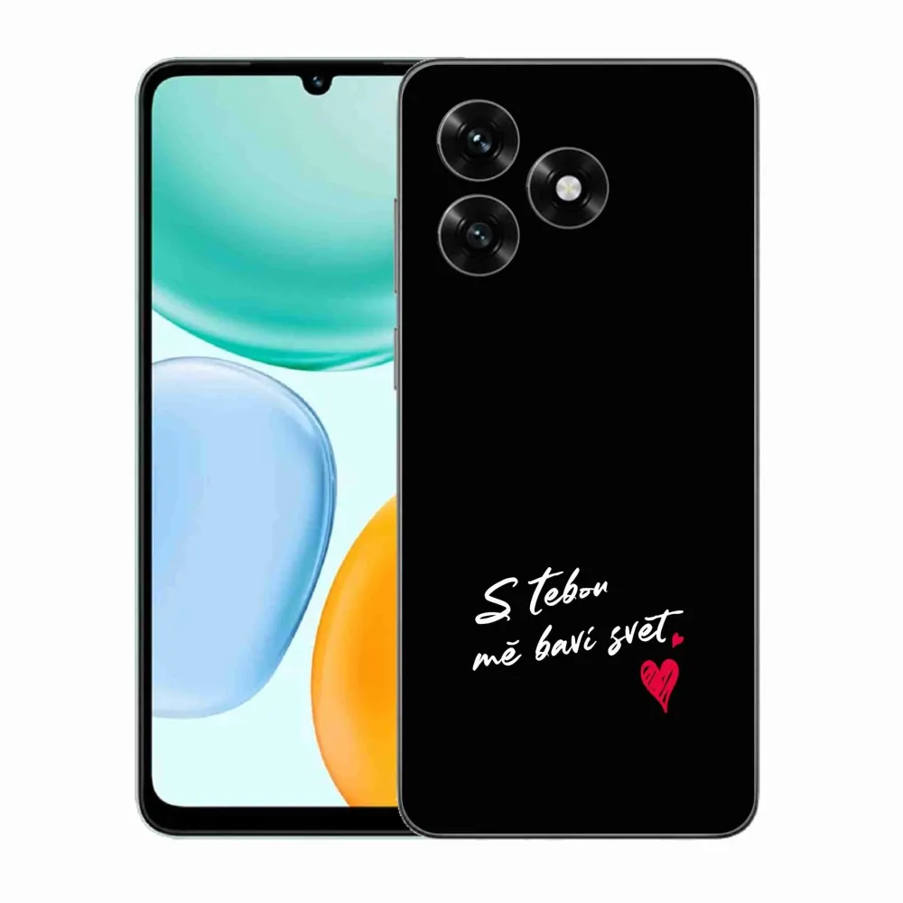 Pružný gélový obal mmCase s obrázkom na Honor X5c Plus - zamilovaný text 1 čierne pozadie