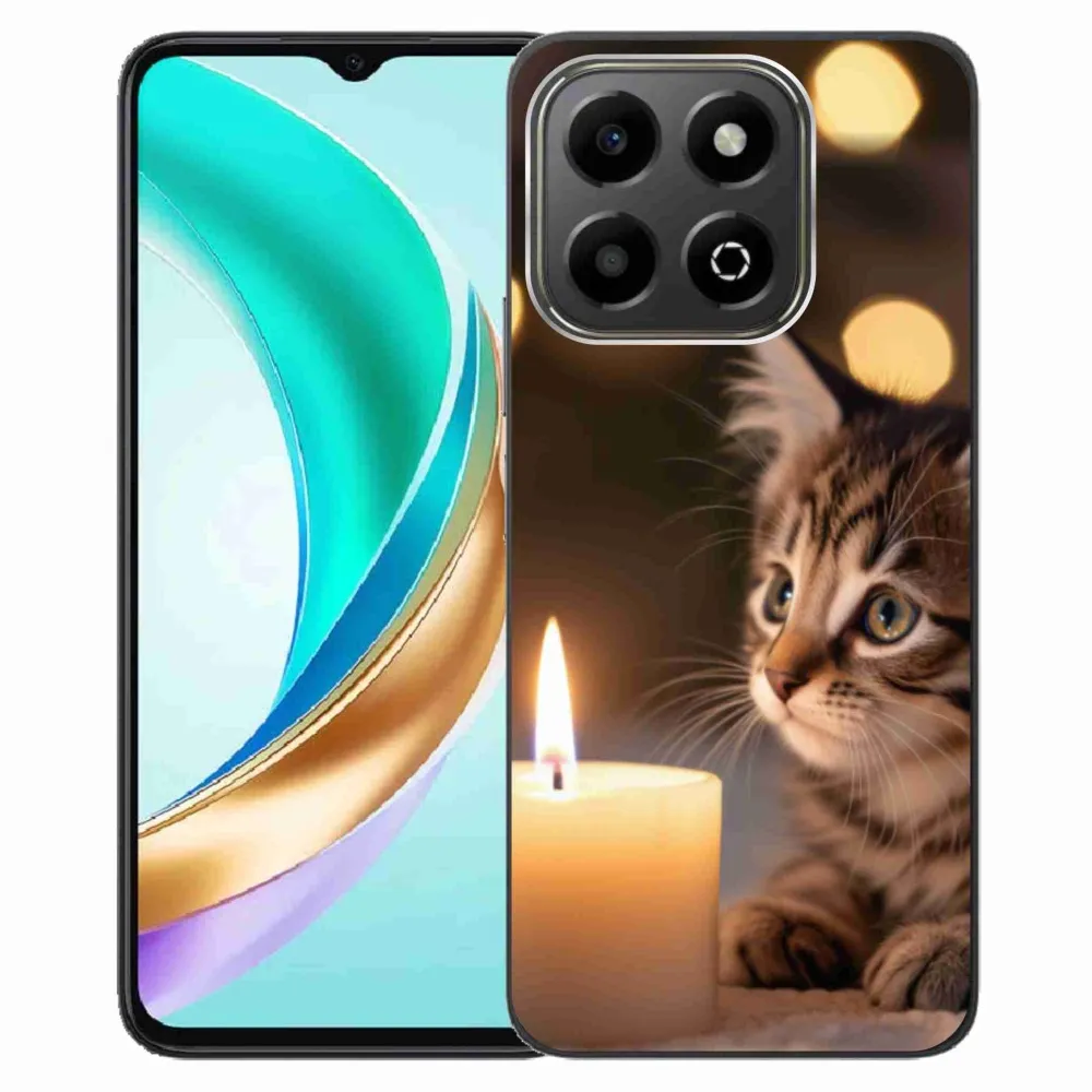 Pružný gélový obal mmCase s obrázkom na Honor X6b - mačiatko a sviečka