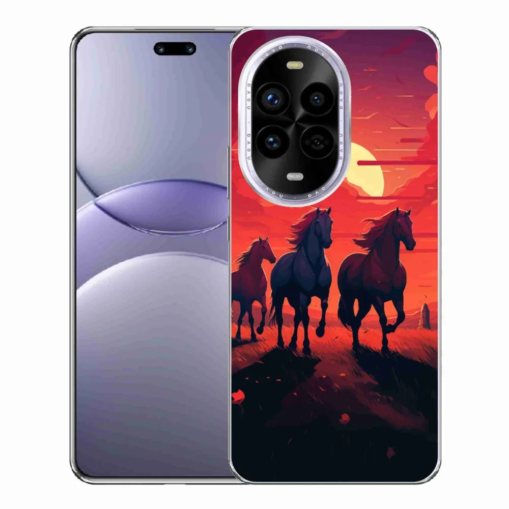 Púzdro s motívom koňa na Huawei Nova 13 Pro 5G - kone a západ slnka poskytuje všetky výhody gélových krytov, a to v zaujímavom dizajne.