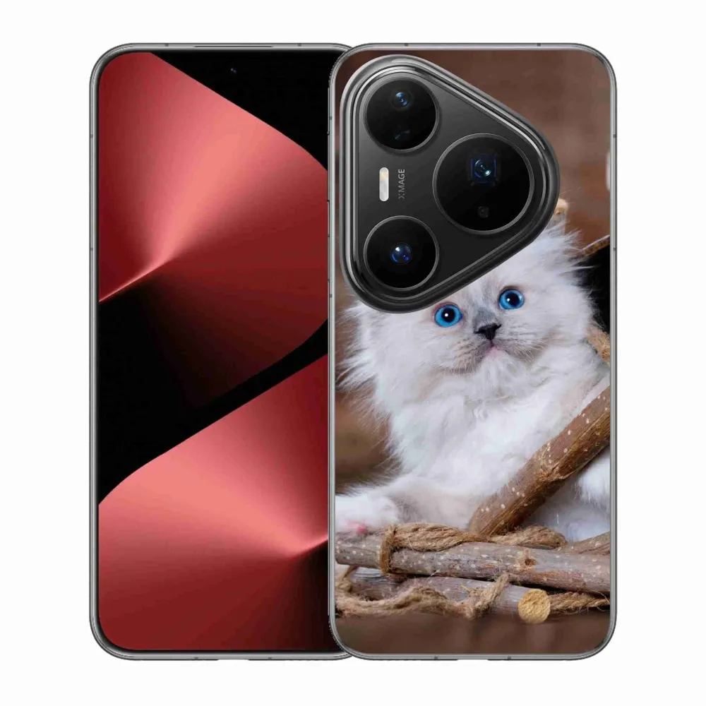 Mačacie púzdro na Huawei Pura 80 Pro - biele mačiatko poskytuje všetky výhody gélových obalov, a to v zaujímavom dizajne.