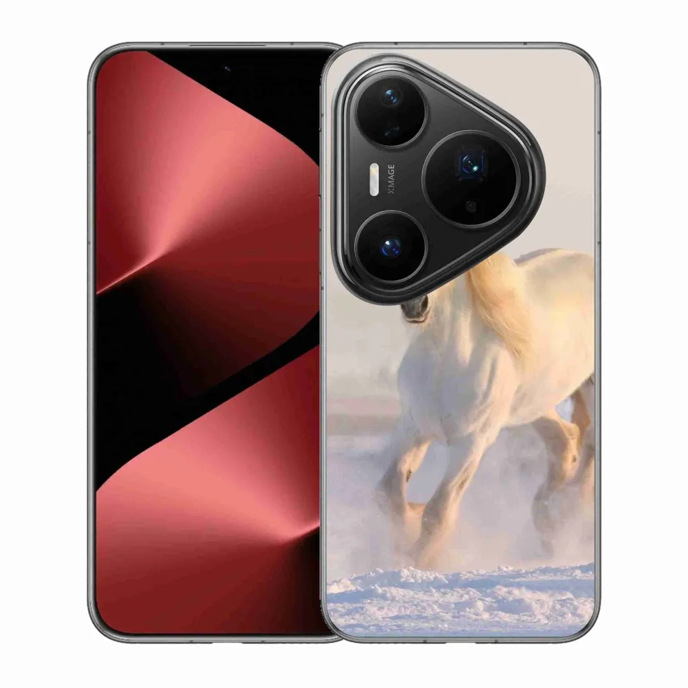 Pružný gélový obal mmCase s obrázkom na Huawei Pura 80 Pro - kôň v snehu