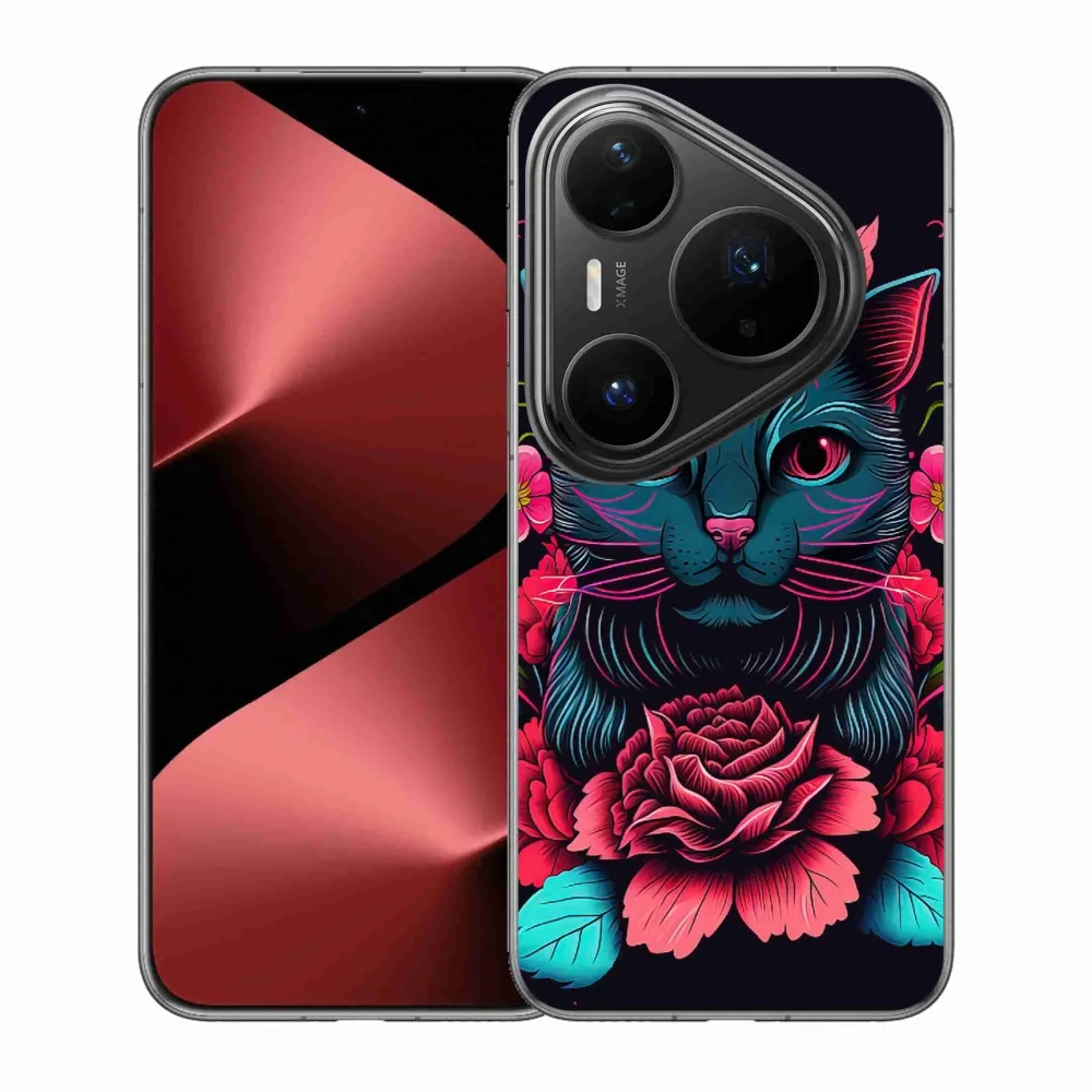 Pružný gélový obal mmCase s obrázkom na Huawei Pura 80 Pro - kvety a mačka