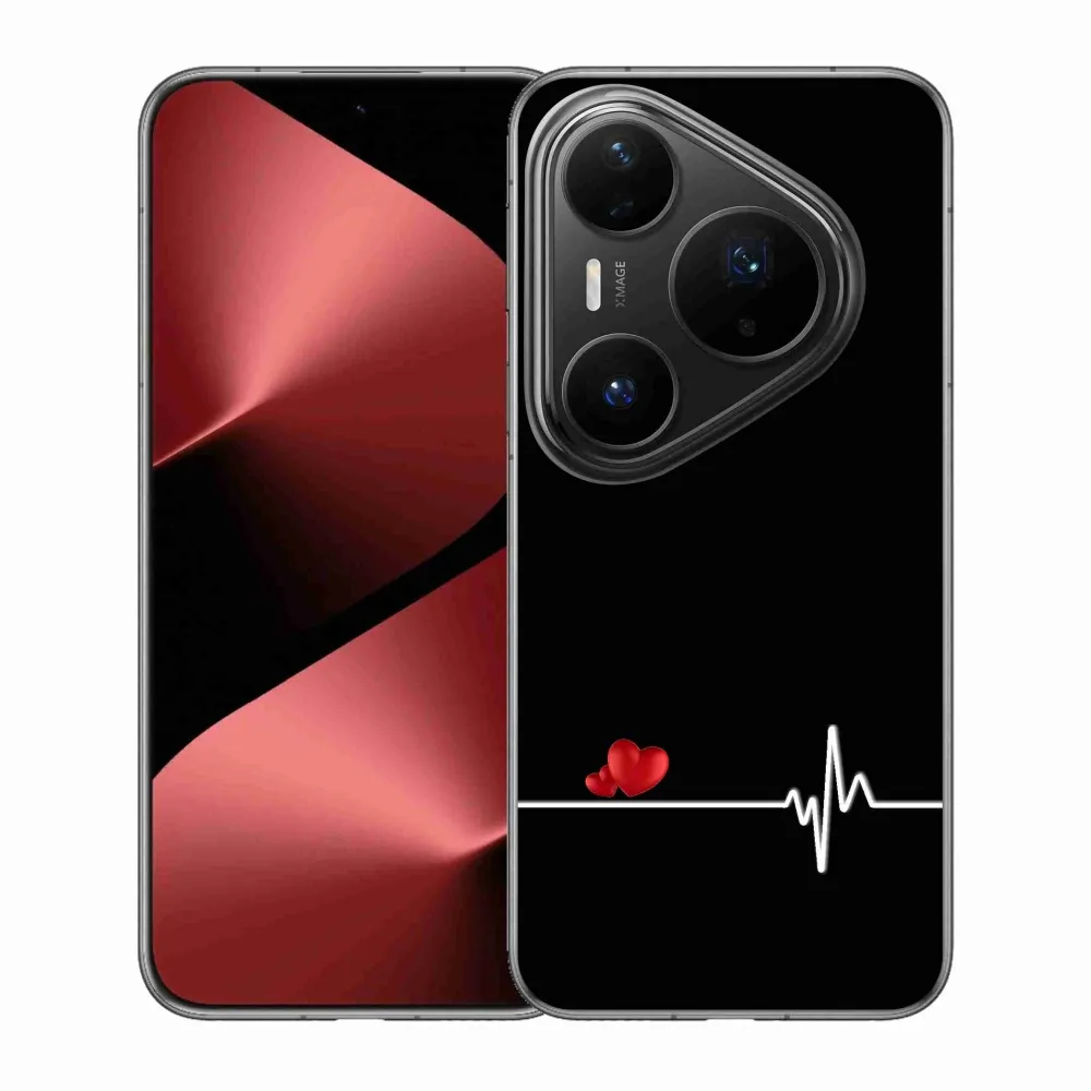 Pružný gélový obal mmCase s obrázkom na Huawei Pura 80 Pro - srdce a tep čierne pozadie