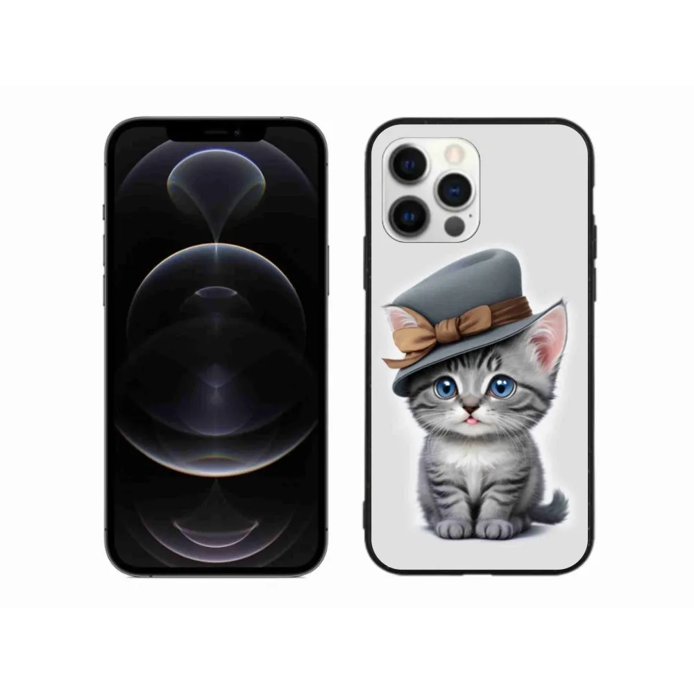 Mačacie púzdro na iPhone 12 Pro Max - mačiatko s klobúkom poskytuje všetky výhody gélových obalov, a to v zaujímavom dizajne.