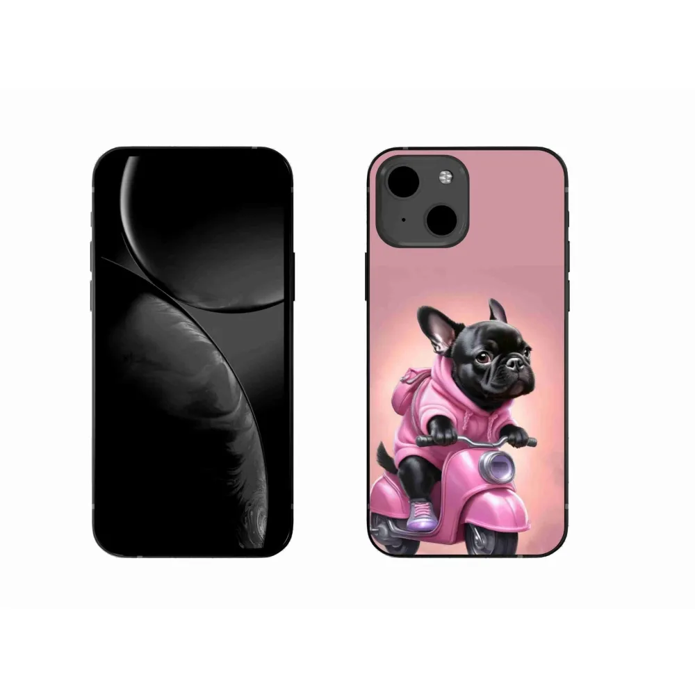 Psie púzdro na iPhone 13 - francúzsky buldoček na skútri poskytuje všetky výhody gélových obalov, a to v zaujímavom dizajne.