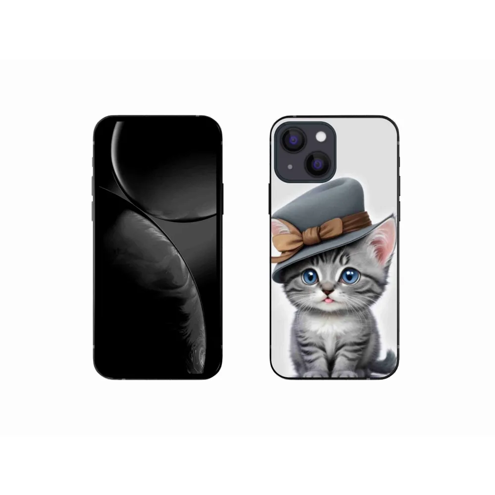 Mačacie púzdro na iPhone 13 Mini - mačiatko s klobúkom poskytuje všetky výhody gélových obalov, a to v zaujímavom dizajne.