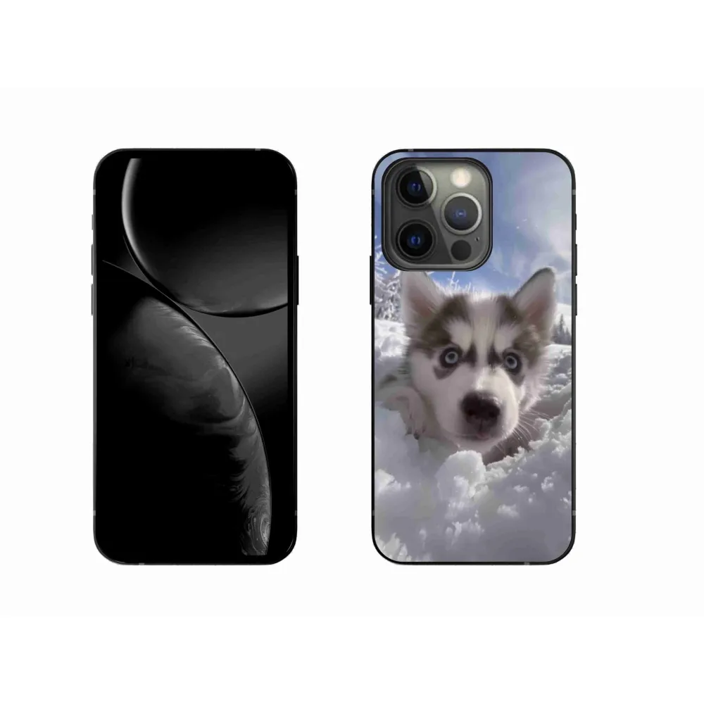 Psie púzdro na iPhone 13 Pro - husky v snehu poskytuje všetky výhody gélových obalov, a to v zaujímavom dizajne.