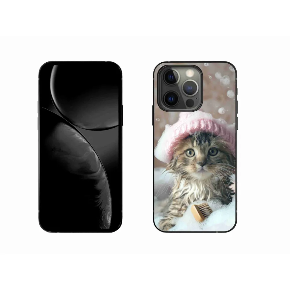 Mačacie púzdro na iPhone 13 Pro - mačiatko a kúpeľ poskytuje všetky výhody gélových obalov, a to v zaujímavom dizajne.