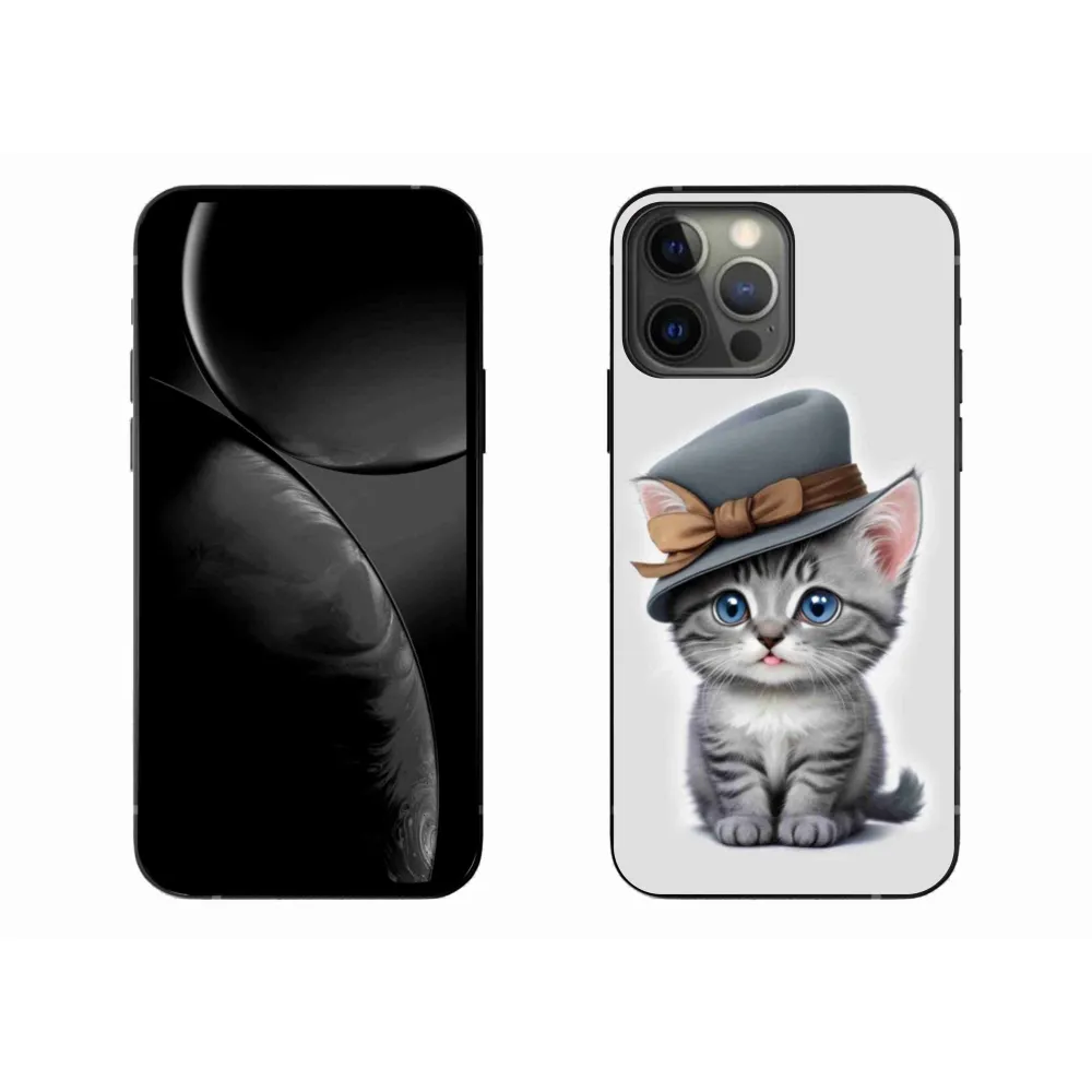 Mačacie púzdro na iPhone 13 Pro Max - mačiatko s klobúkom poskytuje všetky výhody gélových obalov, a to v zaujímavom dizajne.