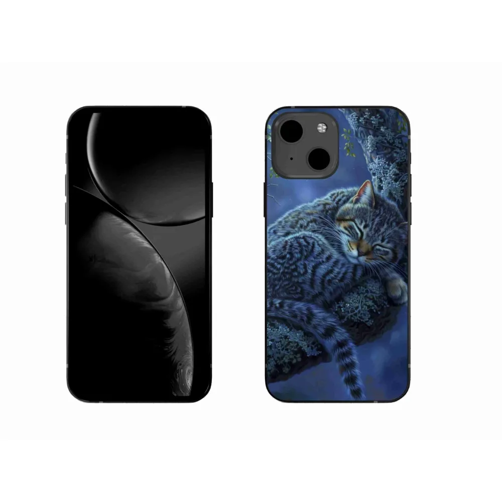 Mačacie púzdro na iPhone 13 - spiaca mačka poskytuje všetky výhody gélových obalov, a to v zaujímavom dizajne.