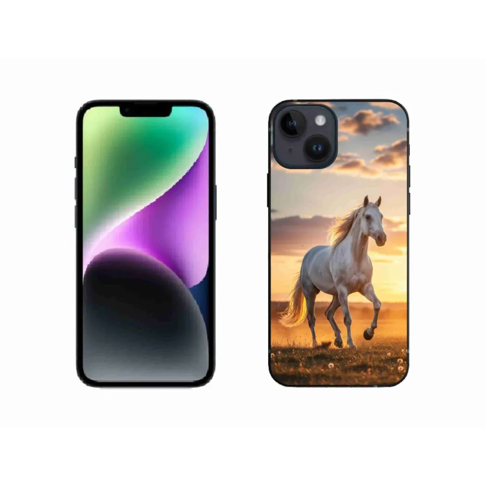 Pružný gélový obal mmCase s obrázkom na iPhone 14 - bežiaci biely kôň 2