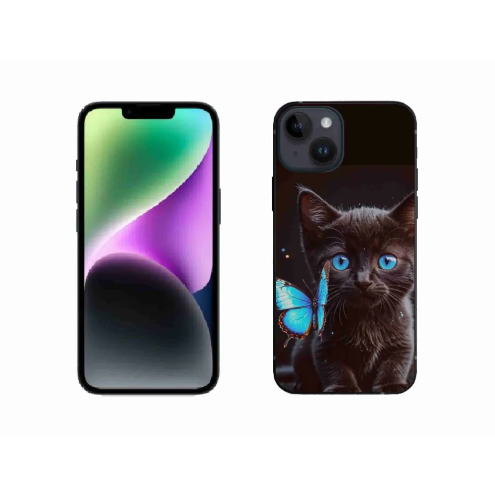 Pružný gélový obal mmCase s obrázkom na iPhone 14 - čierne mačiatko 3