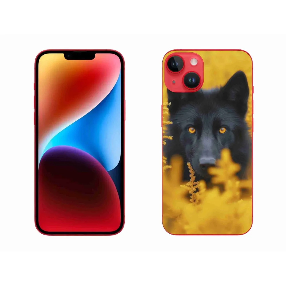 Psie púzdro na iPhone 14 PLus - čierny vlk 2 poskytuje všetky výhody gélových obalov, a to v zaujímavom dizajne.