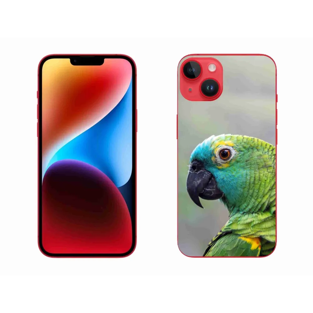 Vtáčie puzdro na iPhone 14 PLus - papagáj amazoňan poskytuje všetky výhody gélových krytov, a to v zaujímavom dizajne.