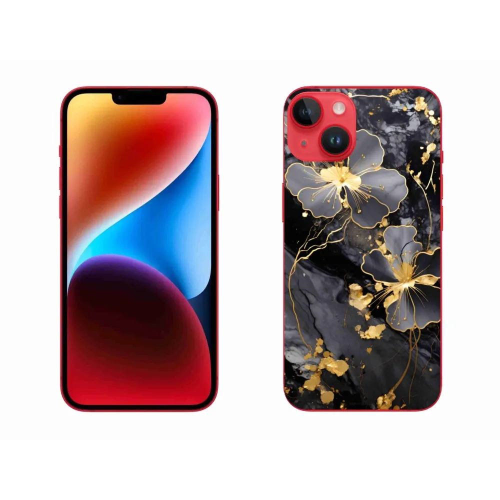 Gélový kryt mmCase na iPhone 14 Plus - zlaté kvety