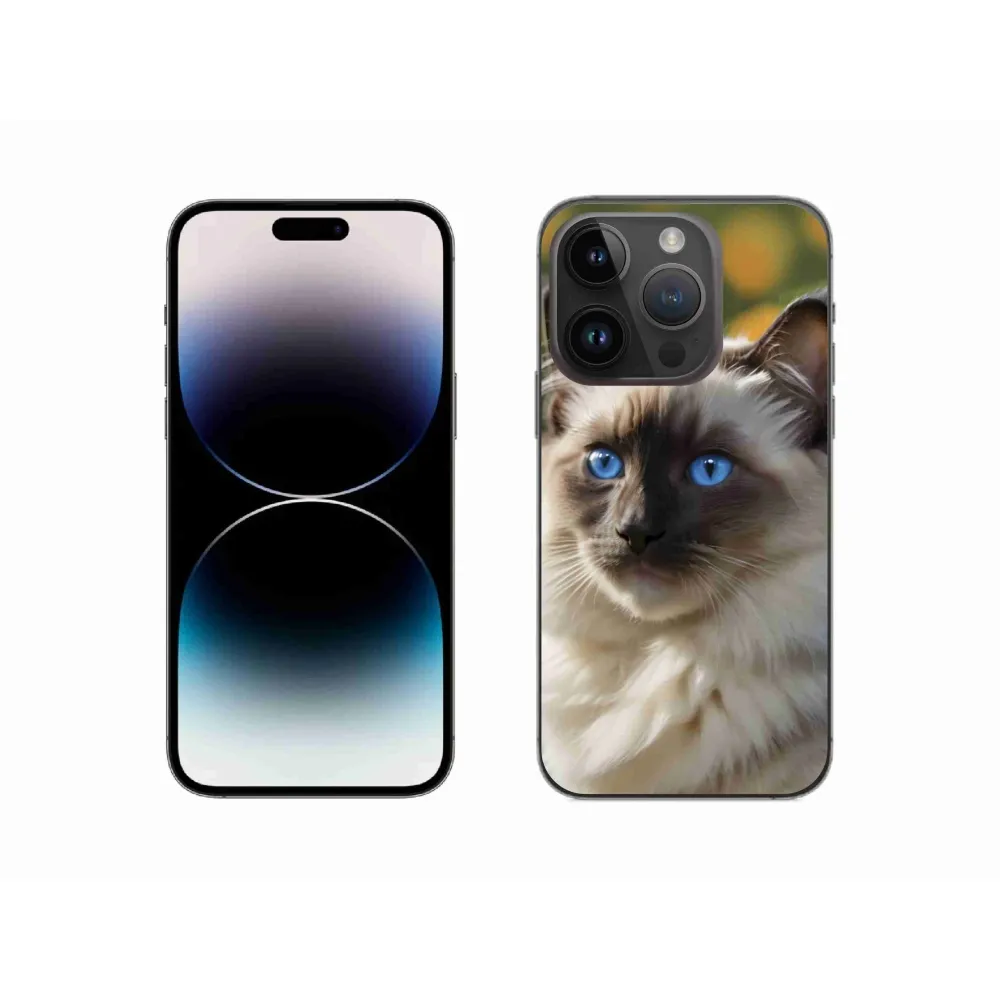 Mačacie púzdro na iPhone 14 Pro - biely ragdoll poskytuje všetky výhody gélových obalov, a to v zaujímavom dizajne.