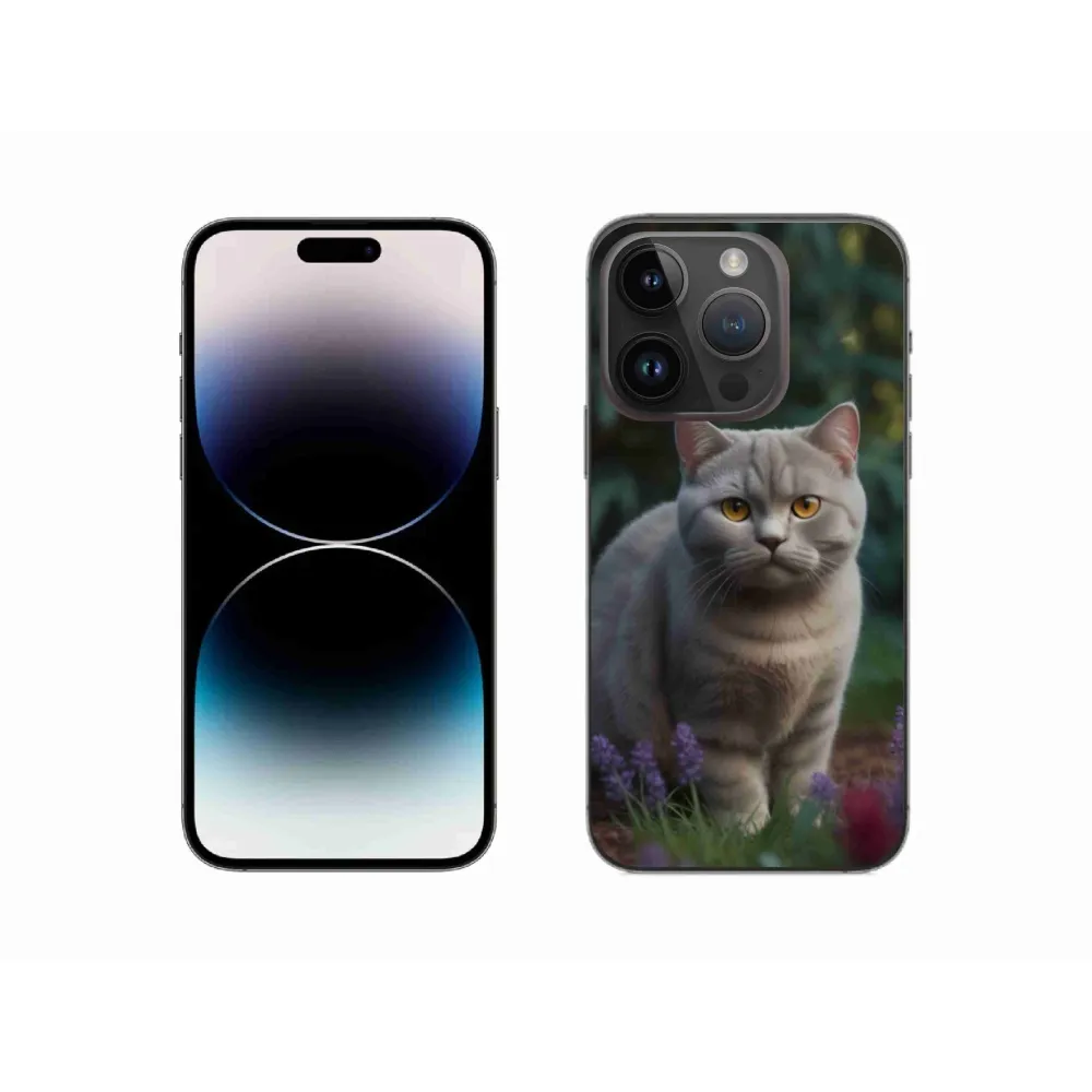 Mačacie púzdro na iPhone 14 Pro - britská mačka poskytuje všetky výhody gélových obalov, a to v zaujímavom dizajne.