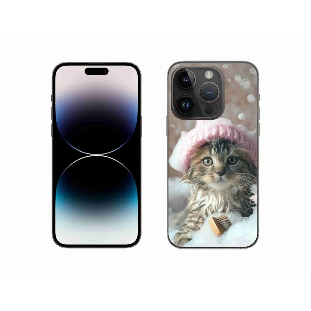 Mačacie púzdro na iPhone 14 Pro - mačiatko a kúpeľ poskytuje všetky výhody gélových obalov, a to v zaujímavom dizajne.
