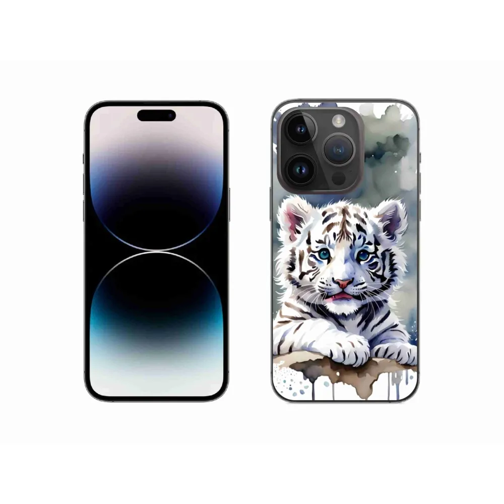 Psie púzdro na iPhone 14 Pro - mláďa bieleho tigra poskytuje všetky výhody gélových obalov, a to v zaujímavom dizajne.