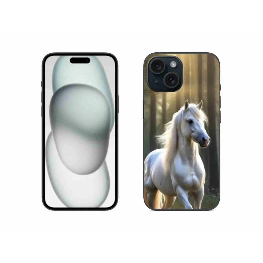Gélový kryt mmCase na iPhone 15 - biely kôň 3