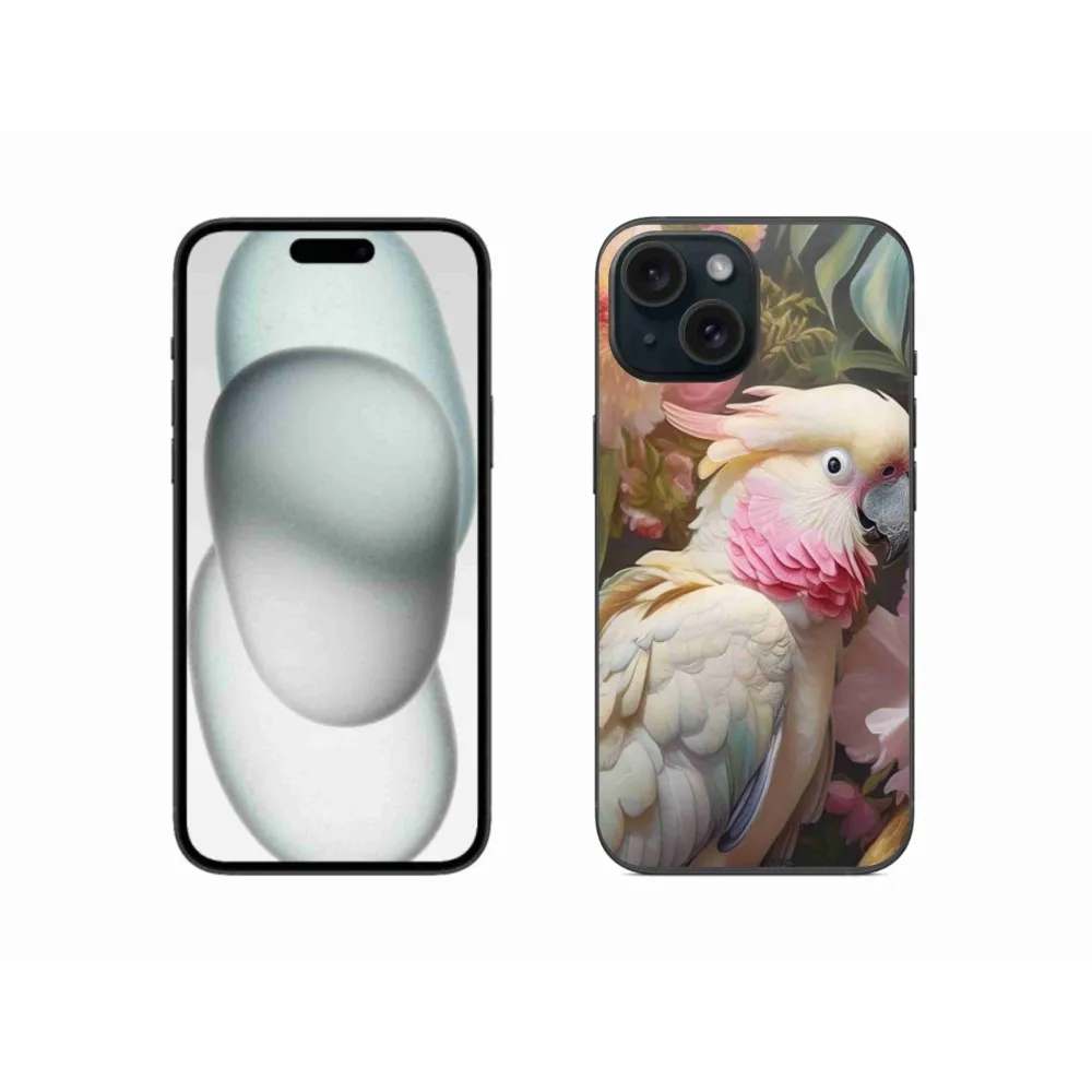 Vtáčie puzdro na iPhone 15 - papagáj kakadu ružový 2 poskytuje všetky výhody gélových krytov, a to v zaujímavom dizajne.