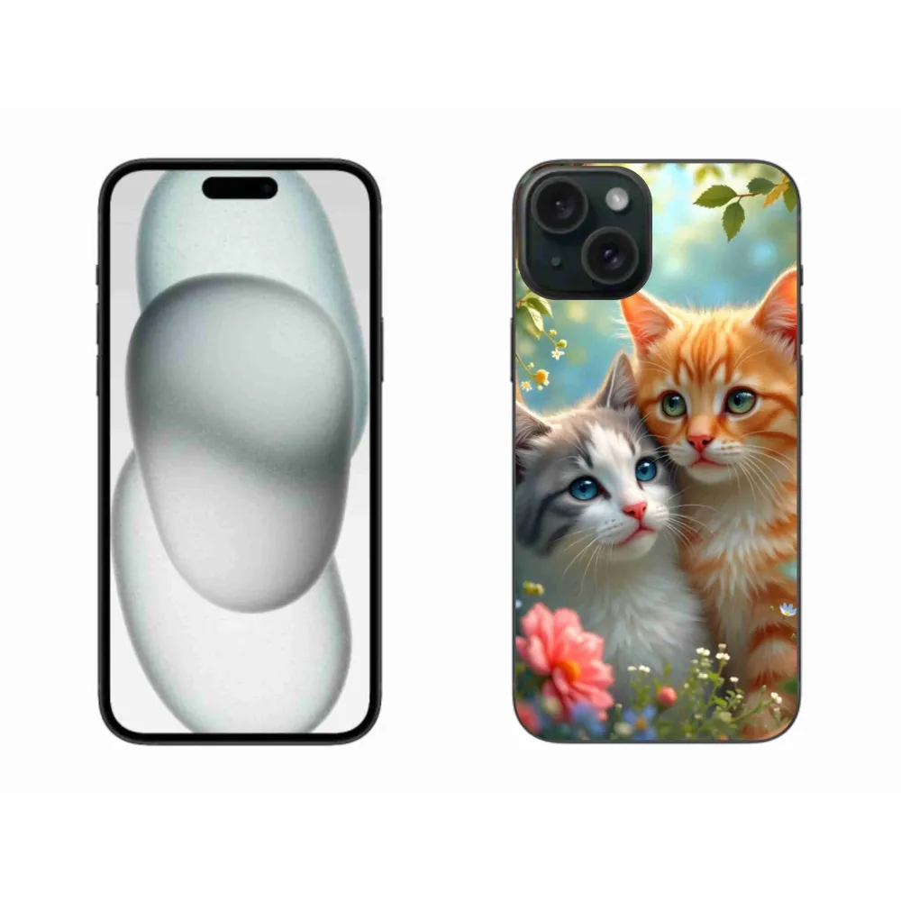 Mačacie púzdro na iPhone 15 PLus - mačacia láska 2 poskytuje všetky výhody gélových obalov, a to v zaujímavom dizajne.