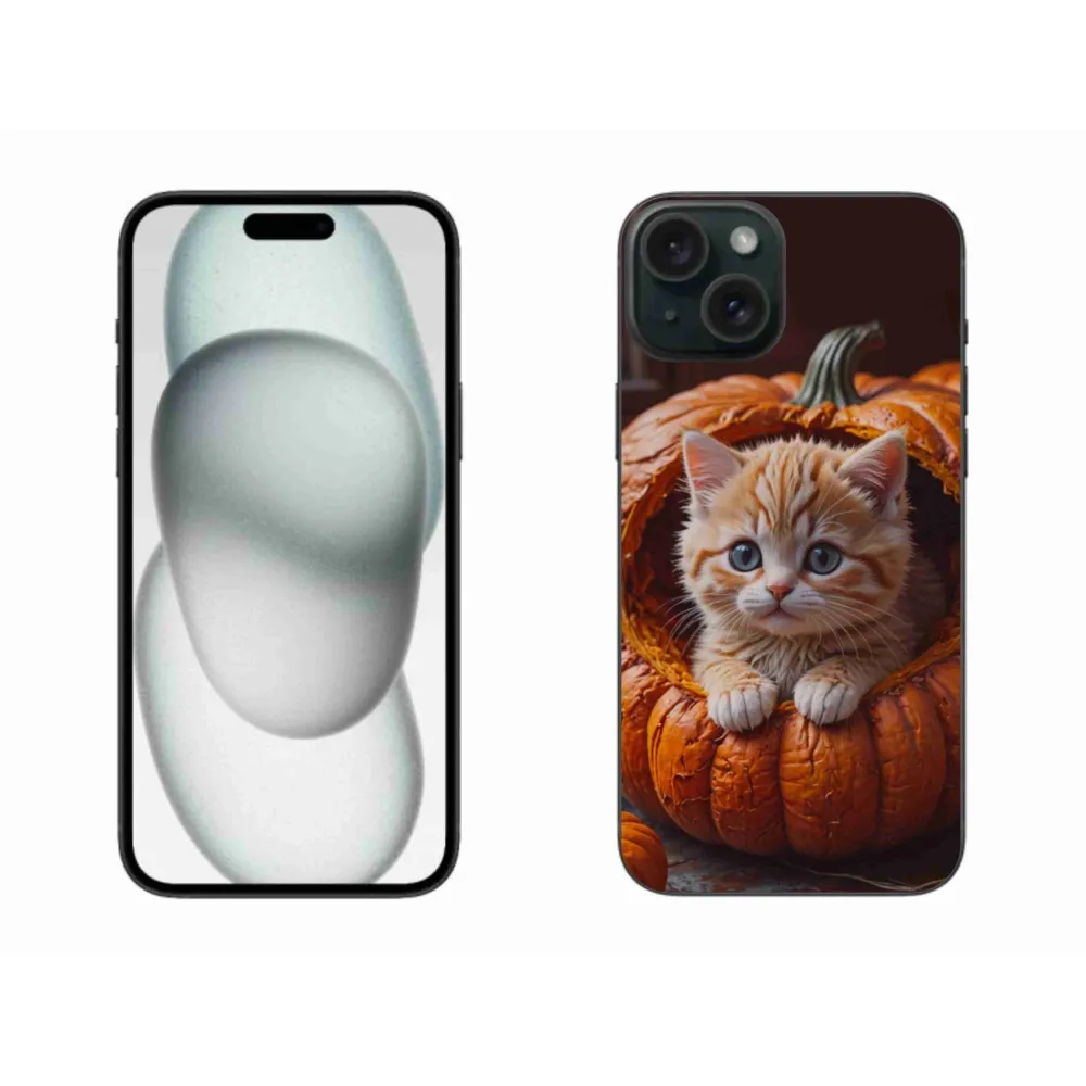Gélový kryt mmCase na iPhone 15 Plus - mačiatko a tekvica 2