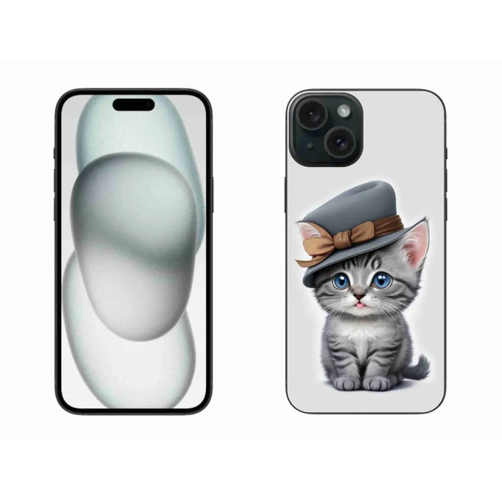 Mačacie púzdro na iPhone 15 PLus - mačiatko s klobúkom poskytuje všetky výhody gélových obalov, a to v zaujímavom dizajne.