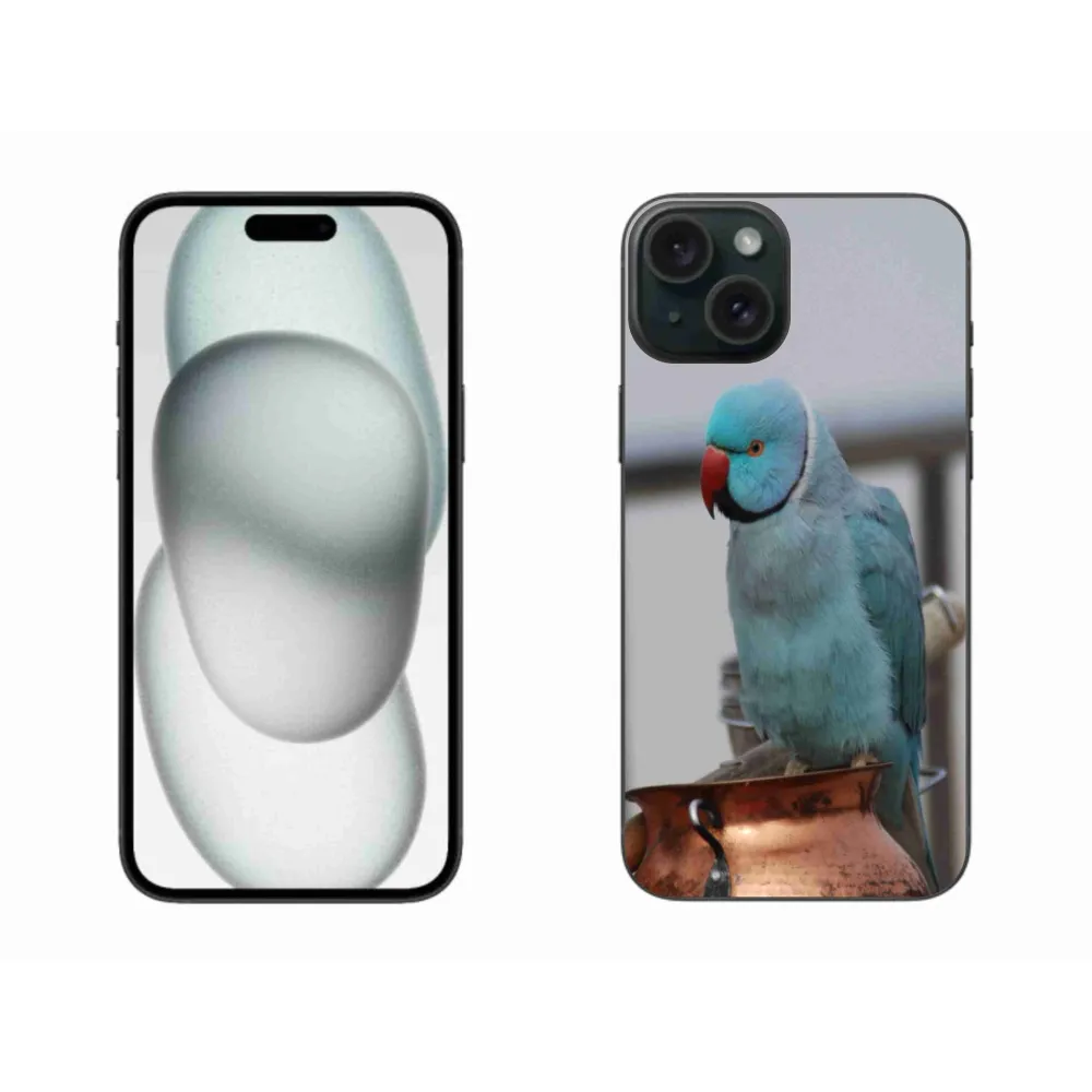 Vtáčie puzdro na iPhone 15 PLus - papagáj alexander modrý poskytuje všetky výhody gélových krytov, a to v zaujímavom dizajne.
