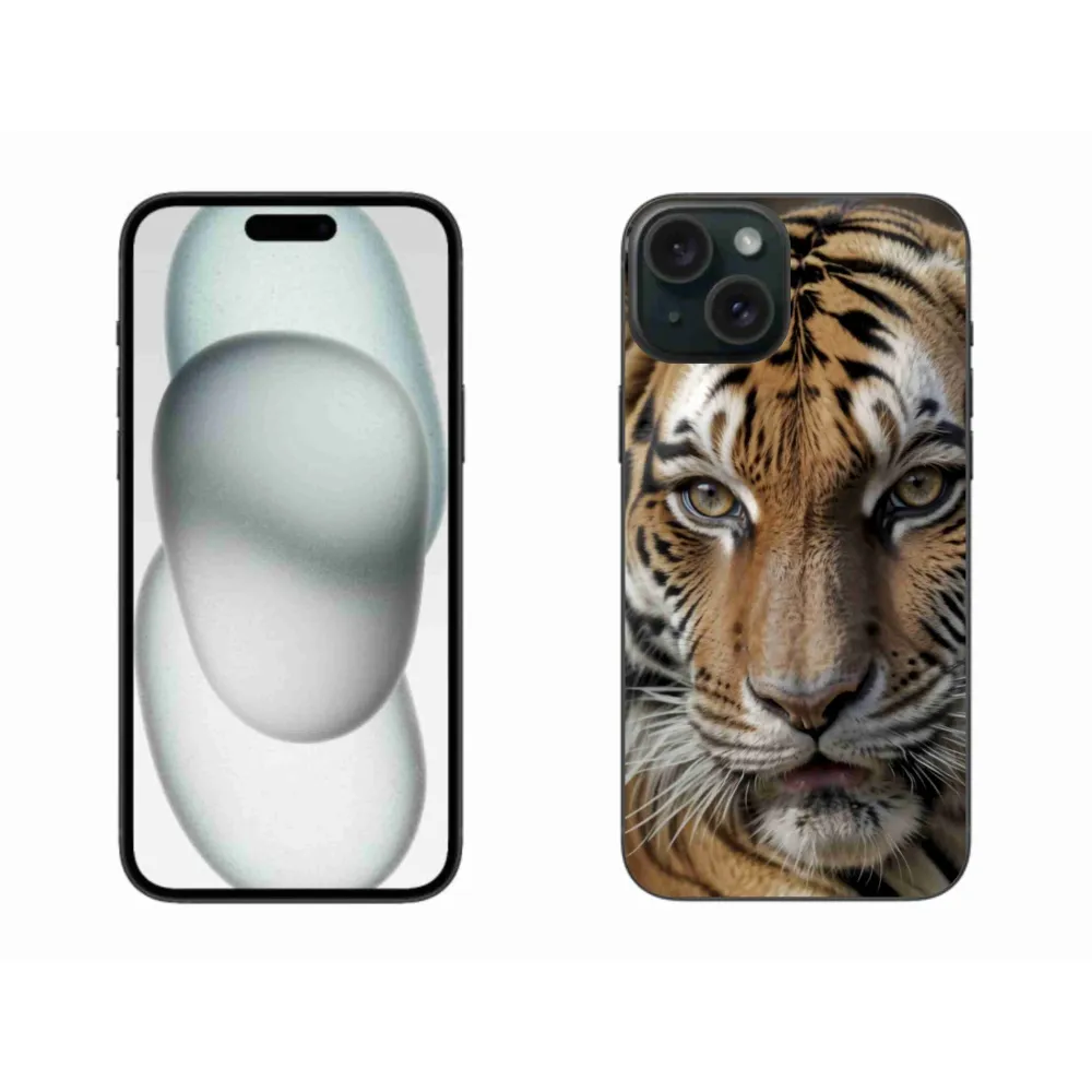 Mačacie púzdro na iPhone 15 PLus - tigrie pohľad poskytuje všetky výhody gélových obalov, a to v zaujímavom dizajne.