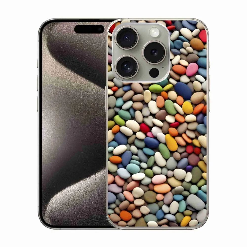 Puzdro na iPhone 15 Pro - farebné kamienky 2 poskytuje všetky výhody gélových obalov, a to v zaujímavom dizajne.