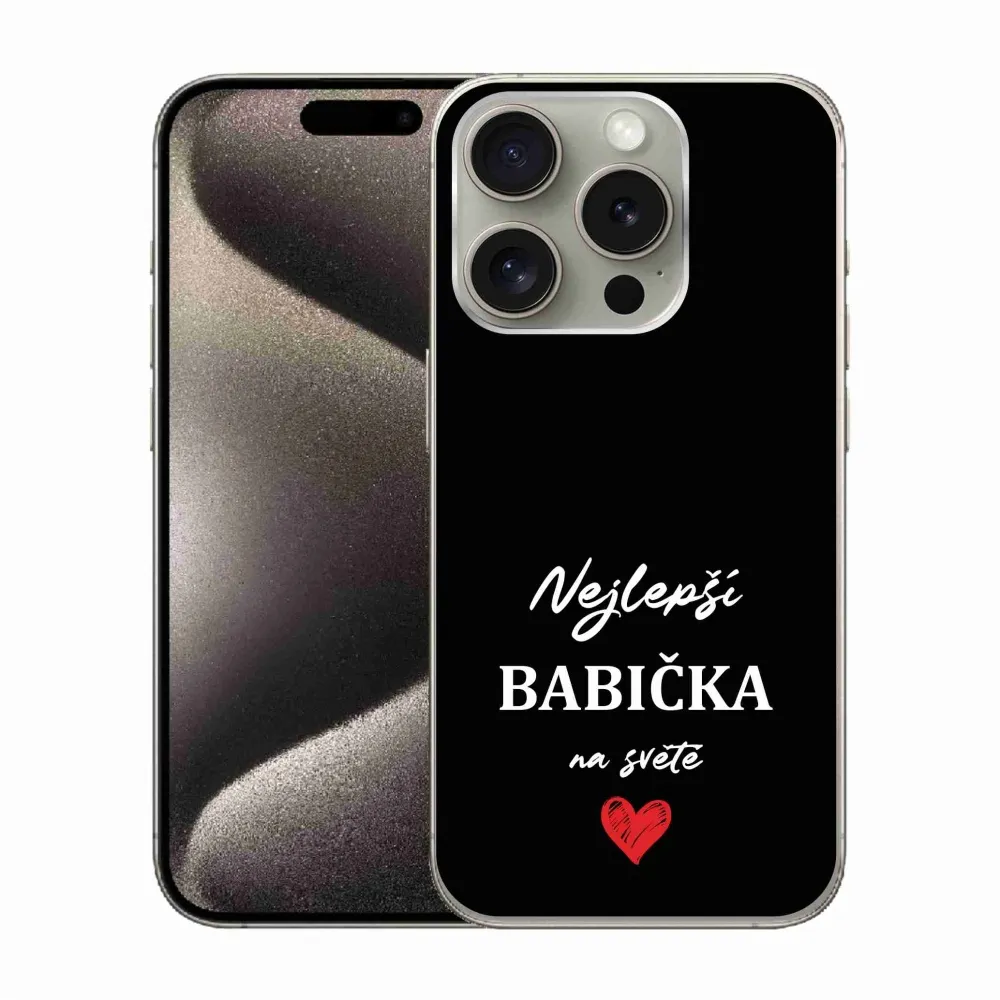 Gélový kryt mmCase na iPhone 15 Pro - najlepšia babička 1 čierne pozadie