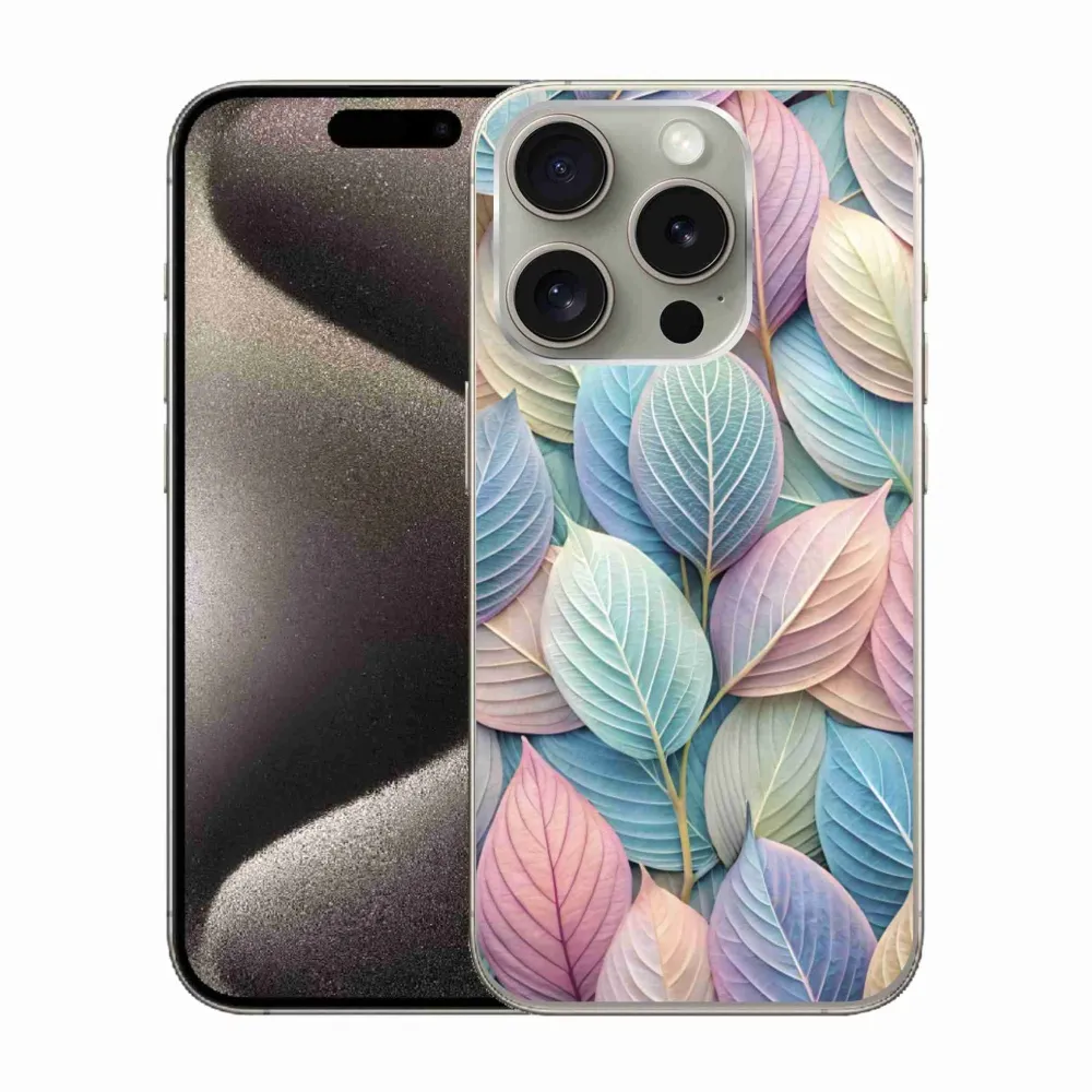 Puzdro na iPhone 15 Pro - pastelové listy poskytuje všetky výhody gélových obalov, a to v zaujímavom dizajne.