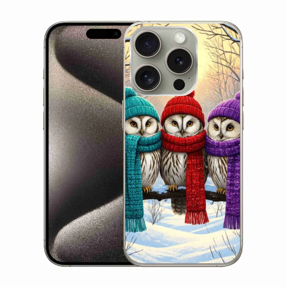 Vianočné puzdro na iPhone 15 Pro - soví priatelia poskytuje všetky výhody gélových obalov, a to v zaujímavom dizajne.