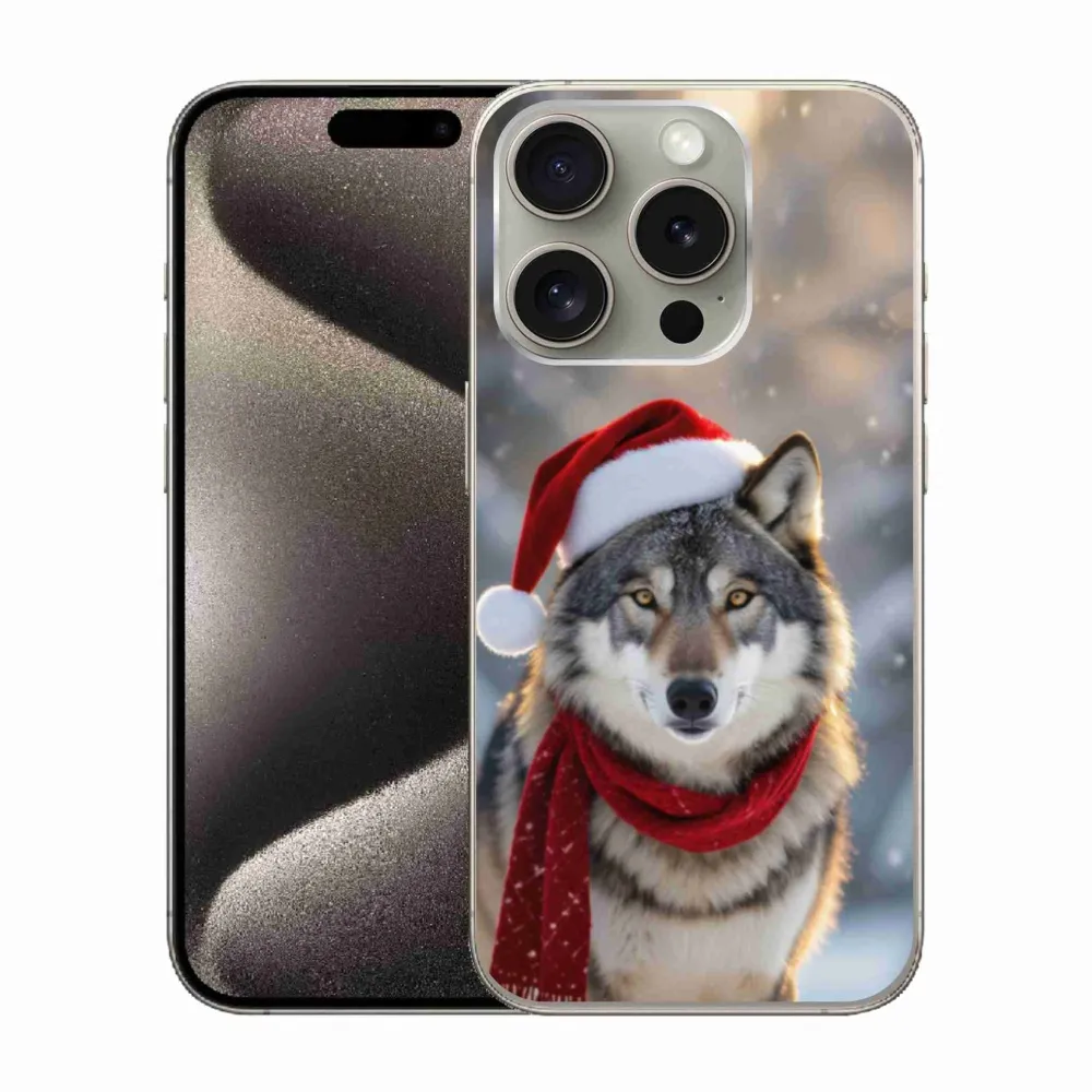 Gélový kryt mmCase na iPhone 15 Pro - vianočný vlk