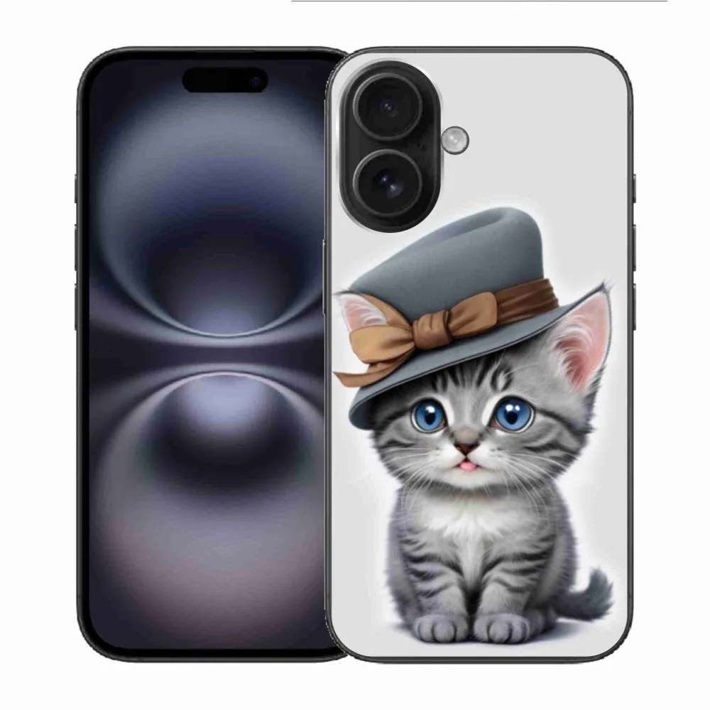Gélový kryt mmCase na iPhone 16 - mačiatko s klobúkom