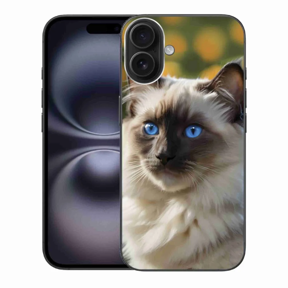 Mačacie púzdro na iPhone 16 Plus - biely ragdoll poskytuje všetky výhody gélových obalov, a to v zaujímavom dizajne.