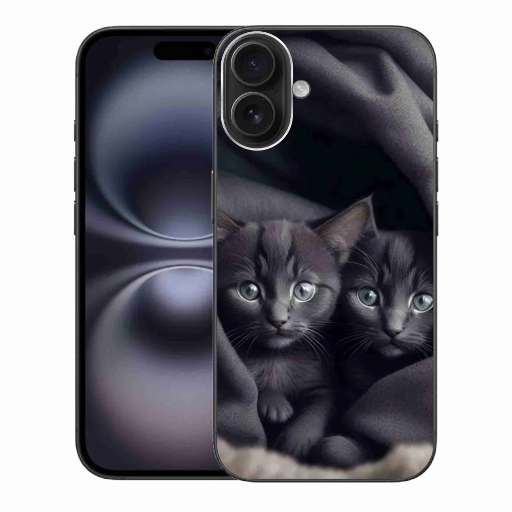 Mačacie púzdro na iPhone 16 Plus - mačacie duo poskytuje všetky výhody gélových obalov, a to v zaujímavom dizajne.
